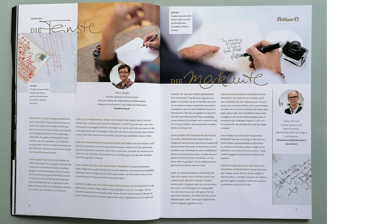 Was das Besondere an jeder Feder ist, wann welche Feder an ihre Grenzen kommt, für welche Handschriftcharaktere welche Feder geeignet ist u. v. m. erfährt der Interessierte im neuen Pelikan-Katalog für hochwertige Schreibgeräte.