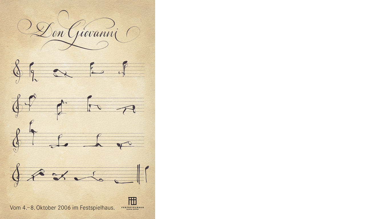 Kalligrafische Illustration der Noten, Schriftzugentwicklung, Lieferung der Feindaten