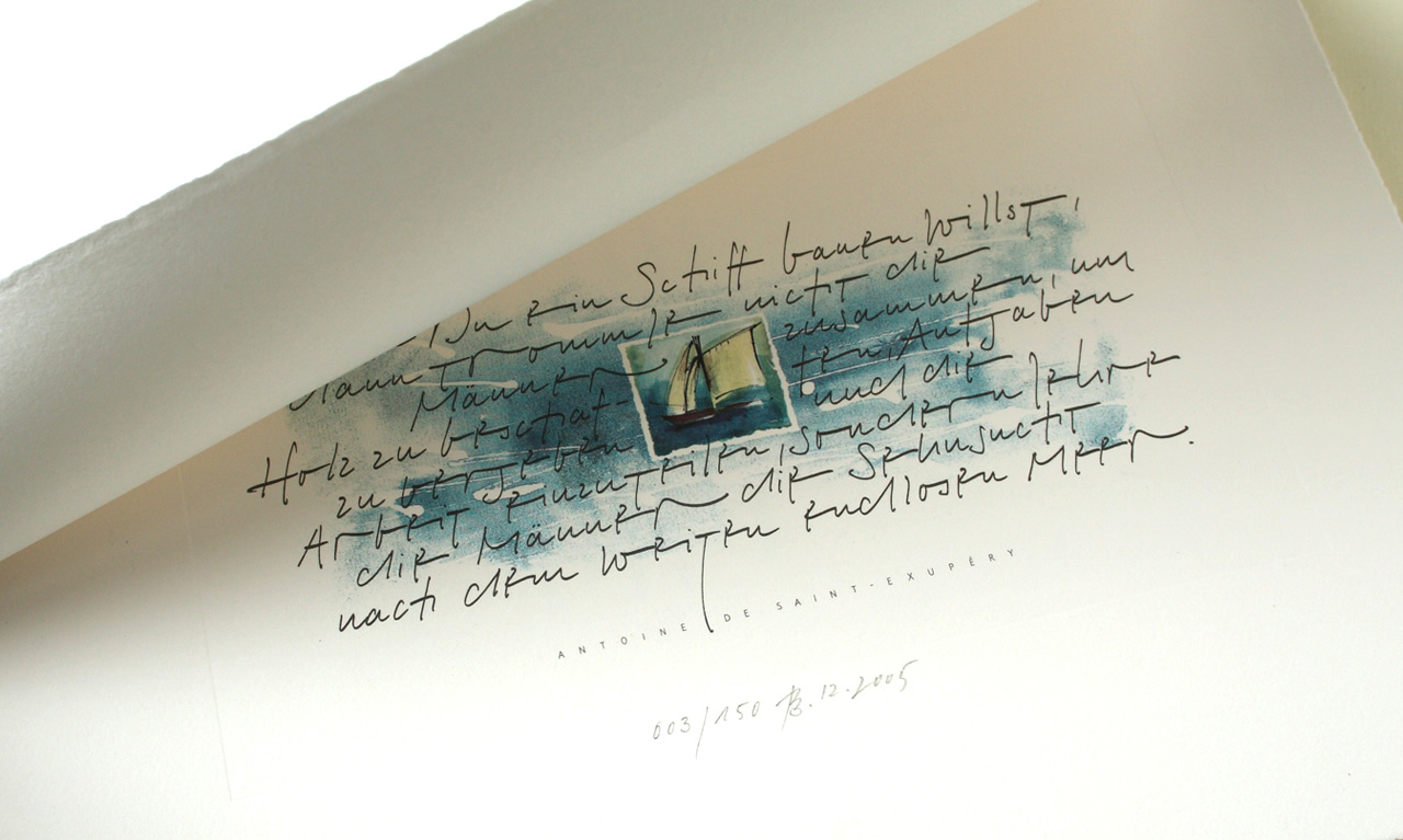 Designkonzeption, Zitatrecherche, Illustration, Kalligrafie, Produktionsabwicklung, Nummerierung und Signierung der limitierten Auflage.