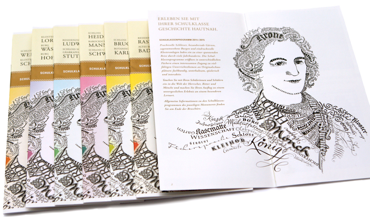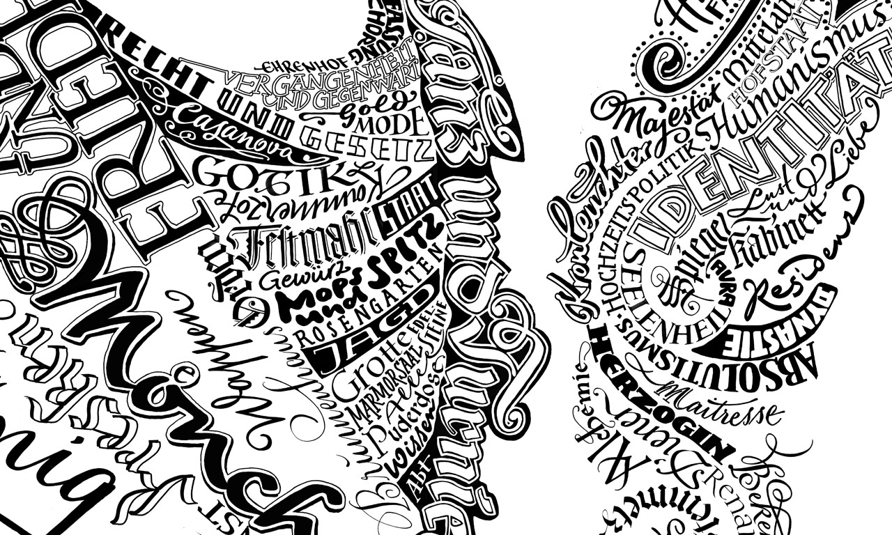 Die besondere Herausforderung des Briefings war, dass die Schrifttypen schriftgeschichtlich zum Inhalt der Worte passen. Da kam mir meine fast 30-jährige Auseinandersetzung mit der Schriftgeschichte aus den unterschiedlichsten Jahrhunderten in Theorie und Praxis sehr entgegen.