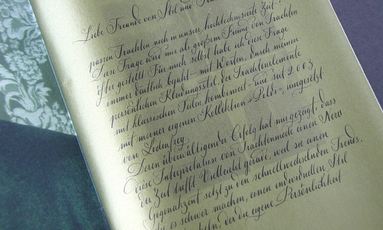 Leistung: Schriftzug-Entwicklung, kalligrafische Umsetzung der Typografie im Innenteil, Lieferung der Feindaten.