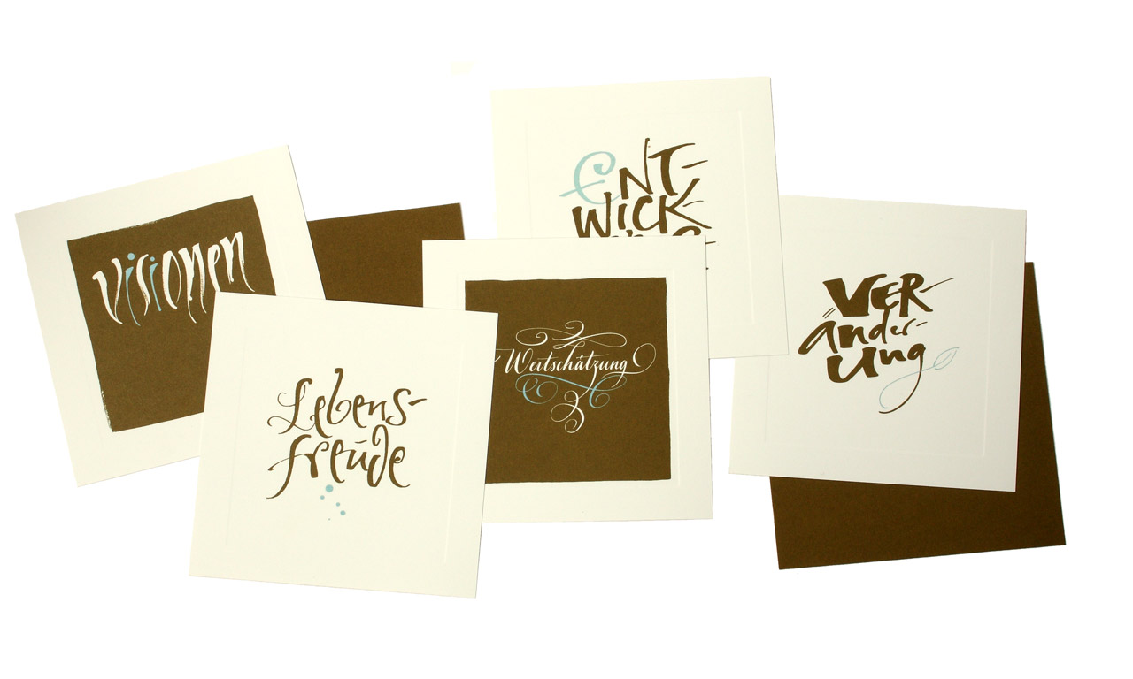 Leistung: Schriftentwürfe, Umsetzung der kalligrafischen Wortbilder, Lieferung der Feindaten